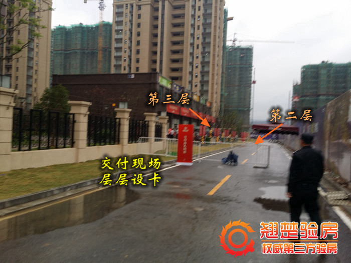 虽然在来之前对于启迪方洲施工质量我们就抱着怀疑的态度,但没想到的是启迪方洲开发商和现场物业比我们更没信心。交付现场三步一岗、五步一站,对于想要进入交付现场的每个人严格排查,验明身份才被允许进入,就差登记身份证了。